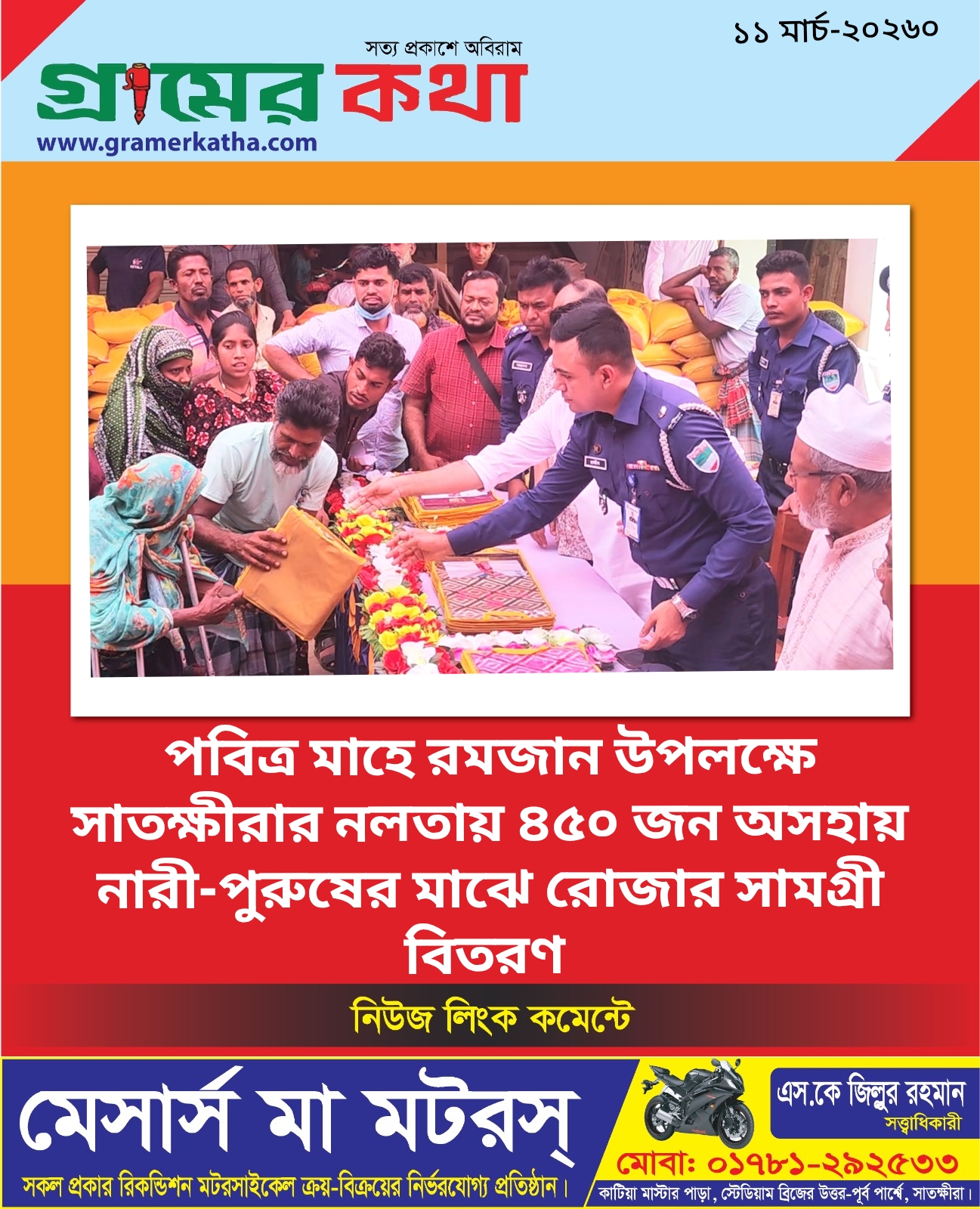 পবিত্র মাহে রমজান উপলক্ষে সাতক্ষীরার নলতায় ৪৫০ জন অসহায় নারী-পুরুষের মাঝে রোজার সামগ্রী বিতরণ