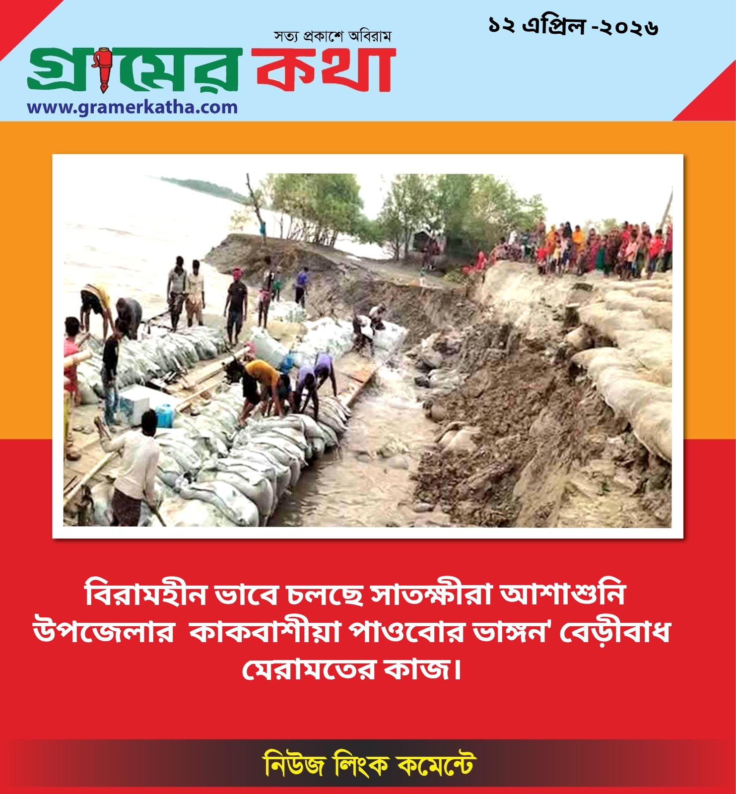 সাতক্ষীরার পাউবো বিভাগ-২ এর নির্বাহী প্রকৌশলী মোঃ আব্দুর রহমান তাযকিয়া বলেন, পাউবো বিভাগ-২ এর আওতাধীন ৭/২ পোল্ডারের কাকবসিয়া খেয়াঘাটের উত্তর পাশে খোলপেটুয়া নদীর বেড়িবাঁধের বাইরে একটি মাটির ঘর ছিল। রবিবার সকালে হঠাৎ করে ওই ঘরের পাশে বেড়িবাঁধের গোড়ায় ধস দেখা দেয়। একপর্যায় প্রায় ৬২ মিটার এলাকাজুড়ে বেড়িবাঁধের গোড়ার মাটি নদীতে ধসে পড়ে। বিষয়টি জানার পর ভাঙনরোধে আমারা দ্রæত কার্যকর ব্যবস্থা গ্রহণ করি। জরুরি ভিত্তিতে একজন ঠিকাদার নিয়োগের মাধ্যমে একটি প্যাকেজে সেখানে কাজ শুরু করা হয়েছে। ভাঙন পয়েন্টে বালু ভর্তি জিও ব্যাগ ডাম্পিংয়ের কাজ চলছে। আশা করছি আগামী ২/৩ দিনের মধ্যে কাজ শেষ হবে। পরে বাঁধের মাটির কাজসহ ভাঙন প্রতিরোধে অন্যান্য প্রয়োজনীয় কাজ করা হবে। আপাতত বেড়িবাঁধটি সম্পূর্ণ শঙ্কামুক্ত বলে জানান তিনি।